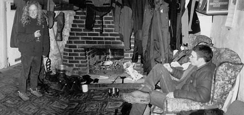 A week winter climbing from the Ling Hut in Torridon over the millennium sounded like a brilliant idea, but the weather thought otherwise… Warm driving rain soon melted all the routes out of condition, however walking the ridge of Liaitach in winter conditions was great. Other forms of entertainment were needed… Pizza night saw our budding Pizza chef (Ruperro Finnazzi) dissolve 5 pizzas all over the oven. Our New Years Eve feast had 5 courses, rustled-up in the gaslight of the kitchen. Drinking games (Hoe down! Cowgirl!), a naked dip at midnight and Danny with peppers up his nose then followed.
