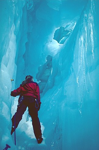 Inside a crevasse on Sarah Glacier