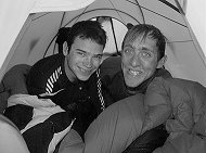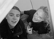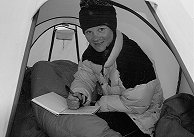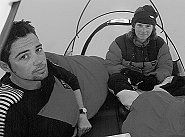 Ground Mats Although they are expensive, Therm-a-rests are indispensable when camping on snow and ice. We have found even the thickest Karrimats feel cold and get condensation on snow. Under tents where someone has slept on a Karrimat there are pits where they have melted the snow, compared to Thermarests where you end up on a snow platform! Sleeping Bags There was quite a mixture of sleeping bags on the expedition: Mountain Equipment, Rab and Macpac 3 or 4 season down bags. All worked well, although often the bags were too hot! If we were sleeping during the day the temperature in the tent could reach 25-30° C. Pippa had an old synthetic 4 season bag, which was a bit of a disaster. Synthetic bags lose their loft with age, so my 9-year-old Snowline was fine, but her 5-year-old bag was not. Bivvy Bags In bad weather, the inner and flysheet of the tent can be pressed together by the weight of snow. Moisture in the tent from its festering occupants condenses on the inner tent and drips onto you. For this reason we took bivvy bags (Goretex and Pertex). However we didn’t use them this year. Bivvy bags are useful on short ski tours instead of taking a tent. We used them on our ascent of Bidvest peak, with very memorable views over an ice-choked Kangerdlugssuaq. |