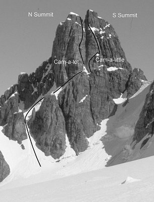 Approach from Needle Glacier and ascend E ridge (snow ridge) to summit. Descent route is reverse of ascent. (Peak used to recce snow route on Pulpit).